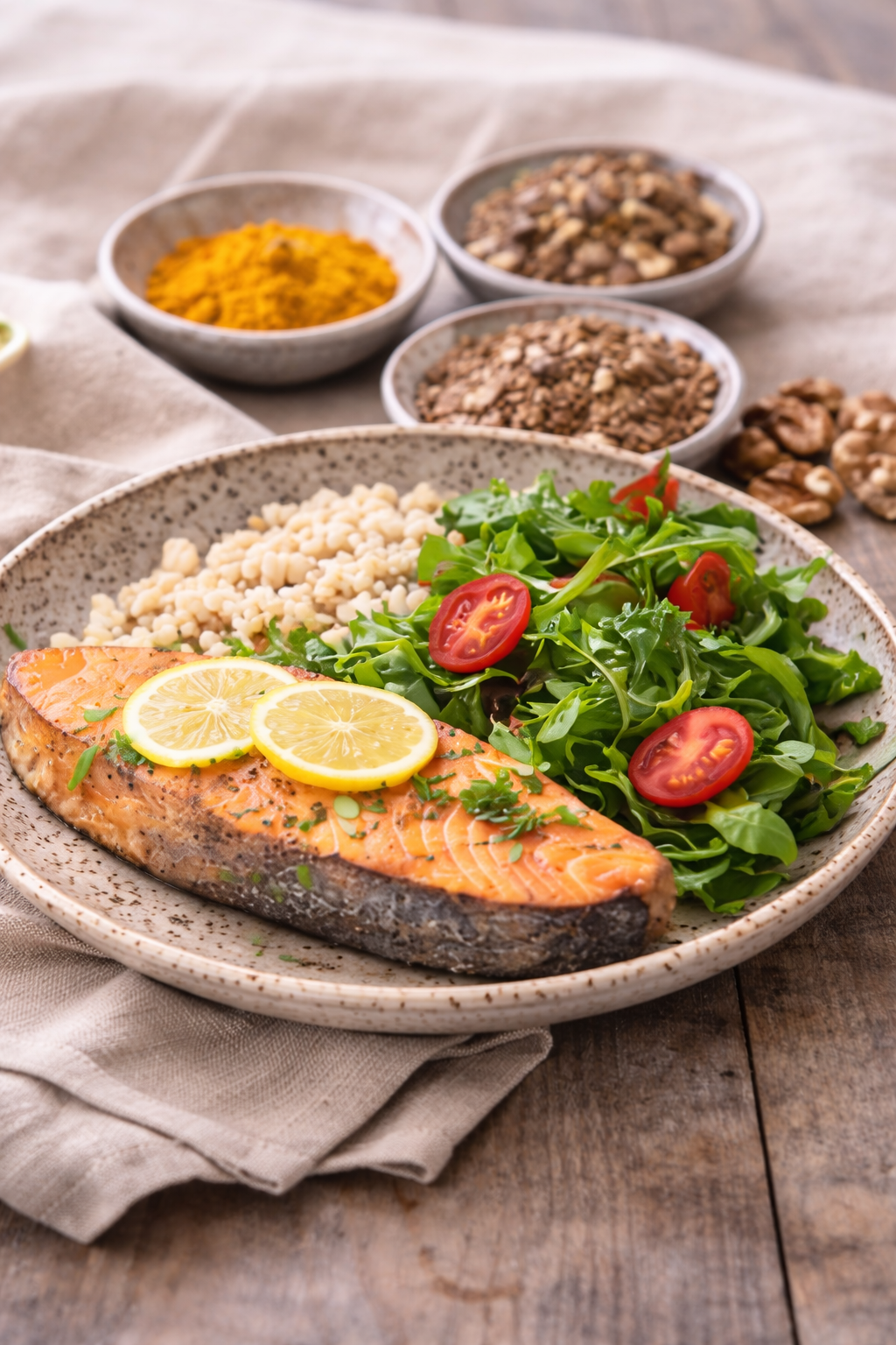 - 연어 등 등푸른생선: 오메가-3 지방산이 풍부해서 염증 감소에 아주 효과적이에요. 하버드 의대에서도 주 2~3회 생선 섭취 시 염증 지표인 CRP가 유의미하게 감소한다고 밝혔어요.