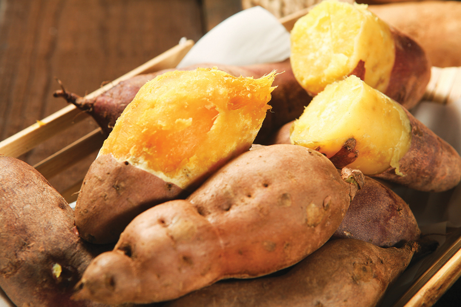 찐 고구마를 소량씩 나눠 먹어요.