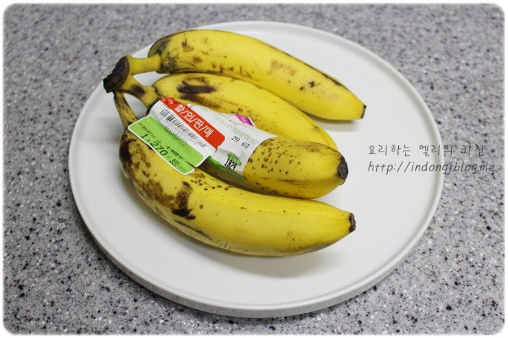 완숙 바나나를 간식으로 먹어요.