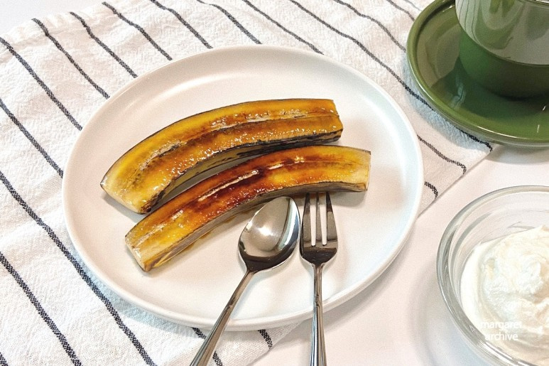 완숙 바나나를 간식으로 소량 섭취해요.