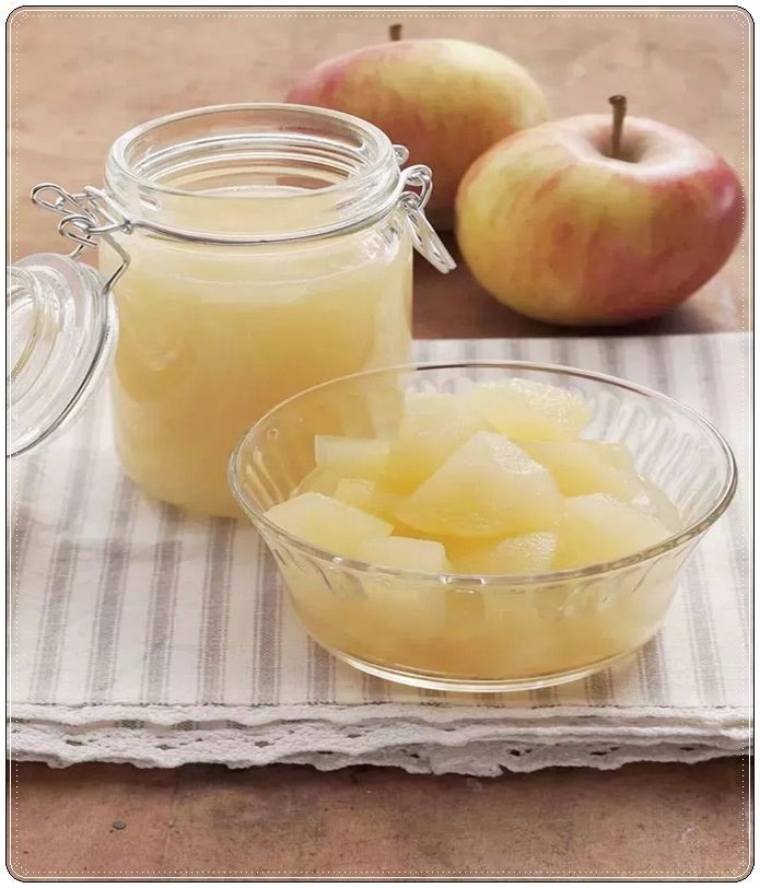 찐 사과나 사과죽 형태로 먹어요.